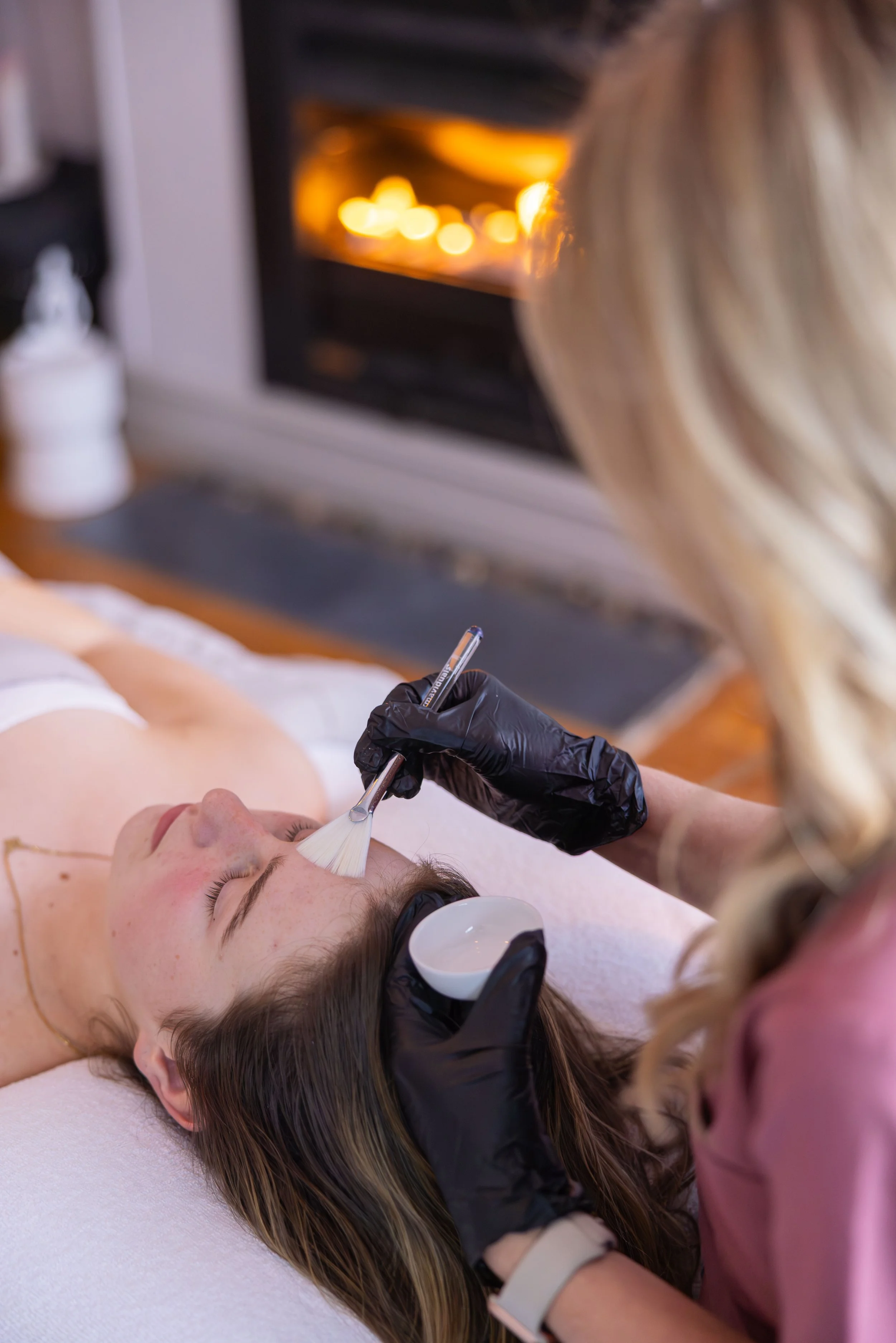Following a brief skin assessment, the clinician selects the most appropriate peel formulation to address concerns such as acne, ageing, and pigmentation, while respecting skin barrier function.